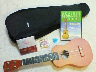 これを申し込んでみました。ウクレレです。すごくないですか?初めて触る人にはピッタリすぎる。ウクレレだけでなく、ケースもついて、教則のDVDまでついて、その他もろもろ必要なものが付属して、