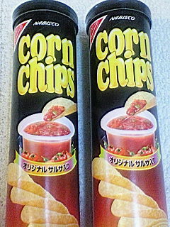 ポテトチップかと思ったら、コーンチップだったことに食べて気が付いた。色味が黄色だし、なんか食べていて食感が固めだなぁと。塩味は少なめで、ぱりぱりしています。(ポテトチップはさくさく感がありますよね)
