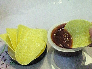 コーン全粒粉を使用して、味わい引き立つコーンオイルでフライしているそうです。チップだけで食べてもいいけれど、ふたを開けるとついているオリジナルサルサをつけて食べるとこれまた美味しい。