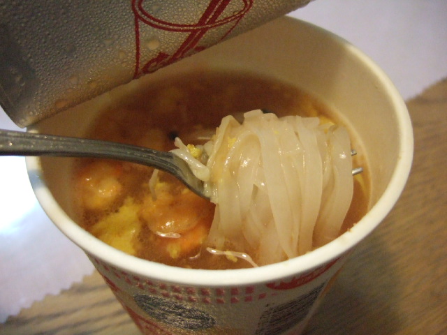 麺はお店で食べるようなすっきりした食感です。柔らかくなりすぎず、べっちょりもせず、しっかりしていてちょうどいい。これは野菜スープヌードルというくらいだから、フォーがメインのものではないのですが、思ったよりも麺が入っていて満足